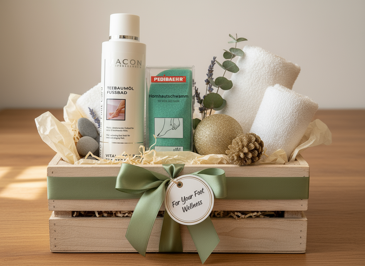 - Das Set enthält eine pflegende Fußcreme, die intensiv Feuchtigkeit spendet und trockene Haut regeneriert.